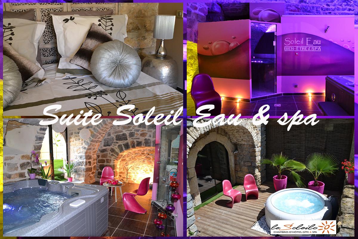 Suite Soleil Eau Spa, bed room with jacuzzi steam room Gorges du Tarn Aveyron